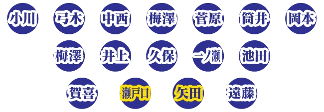 ※このシングルの福神は変則で、フロント2列のうち色がついている7名が「七福神」となっている。1列目の桜井は、この選抜発表の際に正式にキャプテンに就任しており、特例感が強い編成になっている。