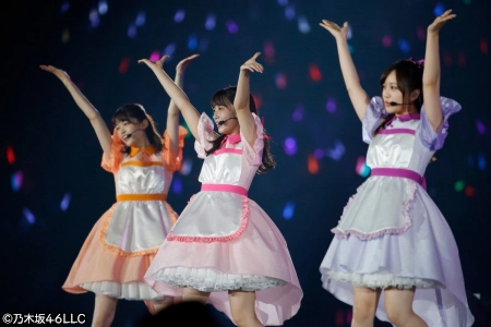 3rdアルバムに収録されているこの楽曲は、ライブで披露されたことがほとんどなく、歌唱衣装を見られるのは希少です。特に、卒業メンバーの中元日芽香のピンク衣装はこれまで披露されたことがなかったと思います。オリジナルメンバーでは、パープルを伊藤万理華が、オレンジを井上小百合が着用しています。